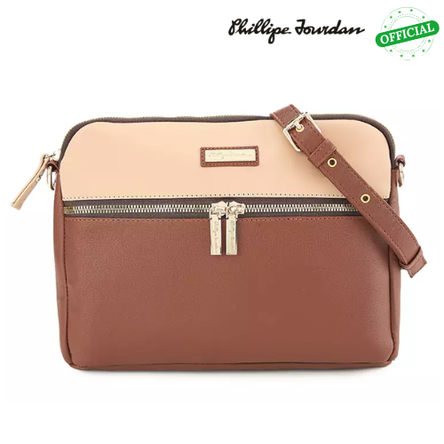 Acenna sling bag desain colorblock untuk gaya feminine classic, Kombinasi warna mocca dan hitam, 1 kantong depan dengan resleting, Kompartemen utama dengan resleting, 1 kantong dalam dengan resleting, Kantong slot dalam, Adjustable and detachable sling strap.