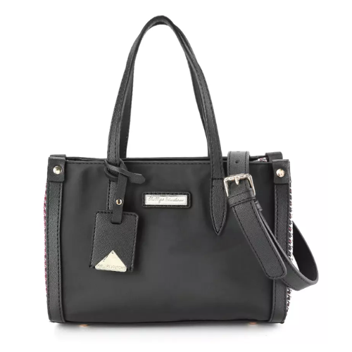 Malony tote bag detail houndstooth print untuk minimalist elegant look, Kompartemen utama dengan resleting, 1 kantong dalam dengan resleting, 1 kantong sleeve dalam, Twin carry handle.