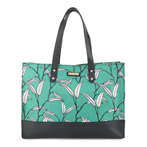 Nalika Tote bag berkompartemen luas dengan detail leaves print kesan feminine, Kompartemen utama dengan reslering, 1 kompartemen dalam dengan resleting, Twin carry handle.