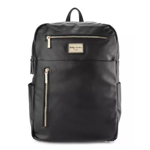 Raquel Backpack bernuansa monokrom untuk gaya kasual, 2 kantong depan dengan resleting, Kompartemen utama dengan resleting, 2 kantong slot samping, 1 kantong dalam dengan resleting, 1 kantong slot dalam, Adjustable strap, Top carry handle.